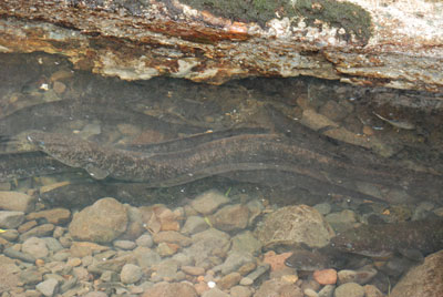 After that we saw some blue eyed eels. The people believed that they gave fresh water to the island. When we got there we were looking for something very small, but they were actually about a metre long.